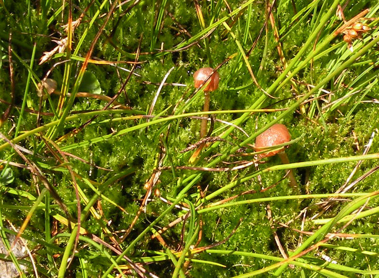 Scendendo il 26-08-10 dal Lago Scuro verso il Lago delle Malghette, alle pendici della Presanella, nei dintorni di Madonna di Campiglio (TN), ho trovato, attraversando un prato molto umido, pressochè allagato, tra il muschio questi funghetti.