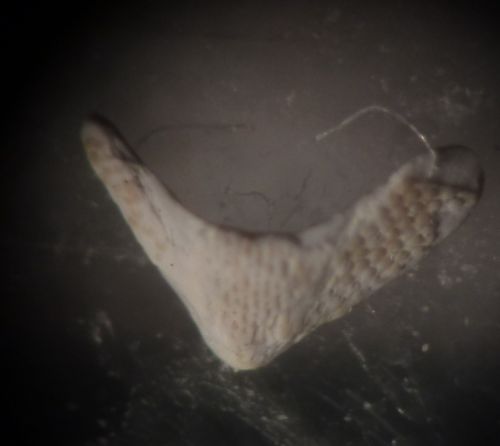 altra placca,forse terminale?,sempre piccolissima e piuttosto rovinata purtroppo. 1-1,5 mm Pleistocene-PR- Immagine: