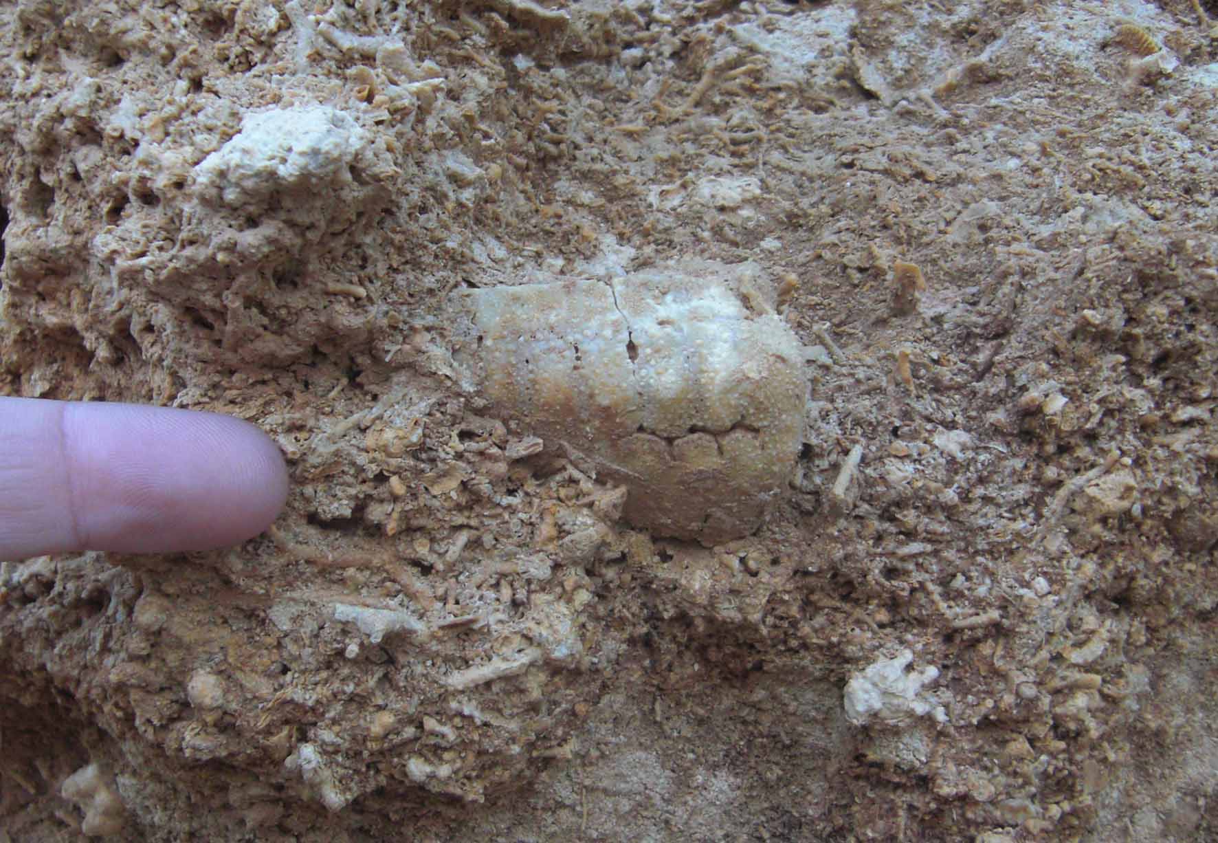 Trovato presso una costa di Siracusa, a base di arenaria. Molti sono i resti di Briozoi e Bivalvi, attorno all'esemplare incognito.