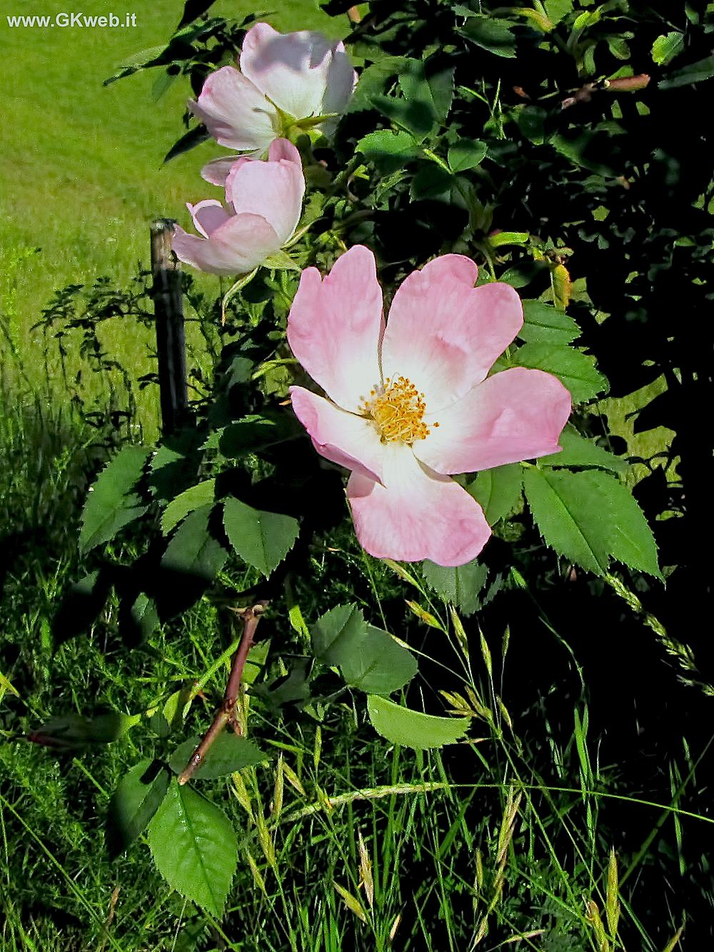 Val di Fiemme, Trentino, 1150 m, prato assolato al di fuori del bosco sopra al paese, fine giugno 2010. Rosa cfr. canina: