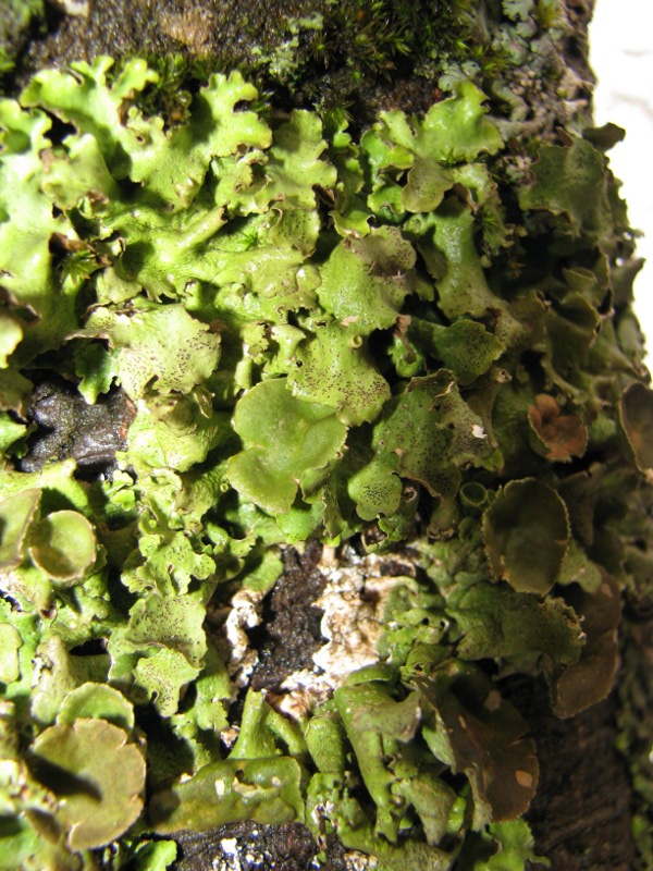 Penso che abbia fotografato entrambe le specie. In particolare le prime foto sono da attribuire a Melanelixia glabra e l'ultima foto a Pleurosticta acetabulum.