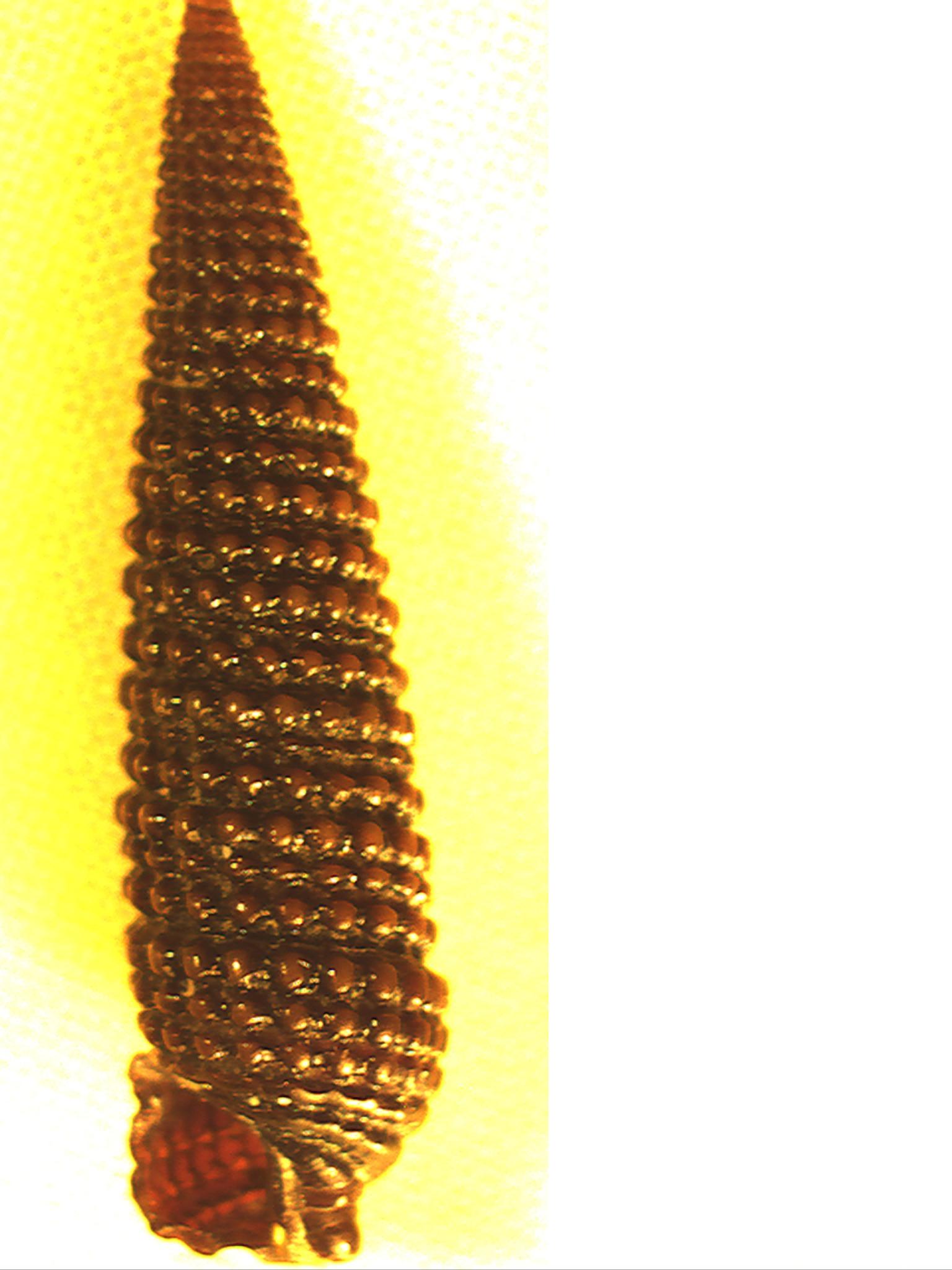 Ciao a tutti , nel detrito di Palo laziale, recuperato domenica u.s., ho trovato questa conchiglietta, che a prima vista pareva sana, ma ha una leggera mancanza in zona di nucleo di protoconca.Lunga + o - 8 mm.Dispone di 17-18 spire, incluse quelle di protoconca. Non mi azzardo nemmeno un po' a fare qalche ipotesi d'identificazione.Chiedo un vostro parere. Saluti-Flavio Immagine: