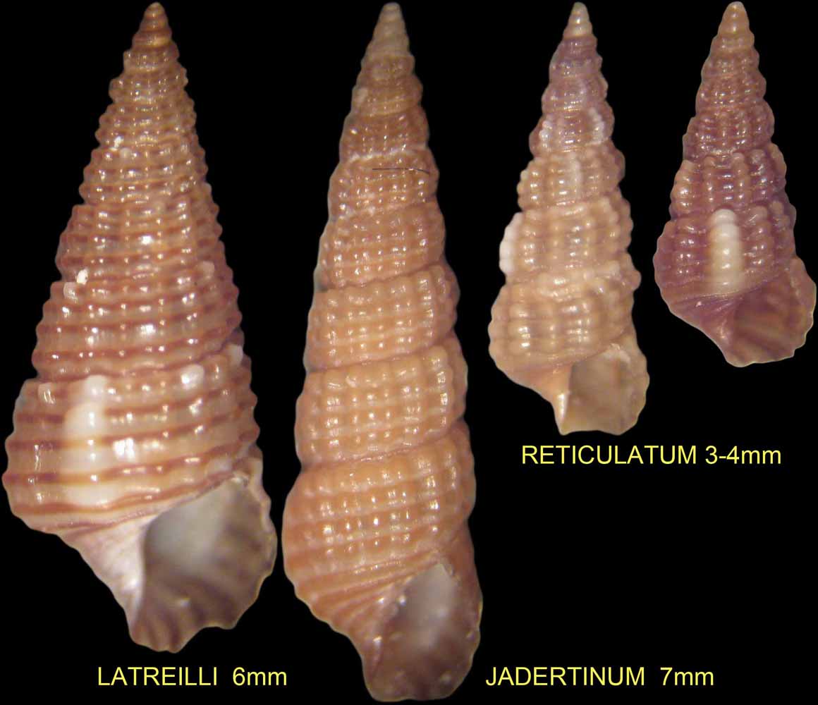 Io sarei per jadertinum anche per i due esemplari a destra ... abbiamo quattro cordoni ben evidenti ed egualmente separati fin dai primi giri ... certo che le varici sarebbero un pò fuori luogo, secondo quanto presente in letteratura ... in poche parole, ecco uno di quei casi dove reticulatum e jadertinum sono difficili da separare.