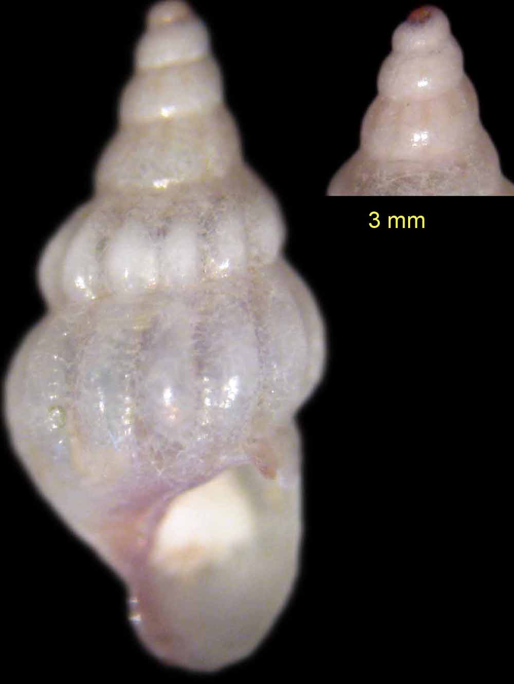 Purtroppo nò, si tratta di Rissoa lia .... tipico il nucleo protratto verso l'alto, ben visibile nella immagine a sinistra.