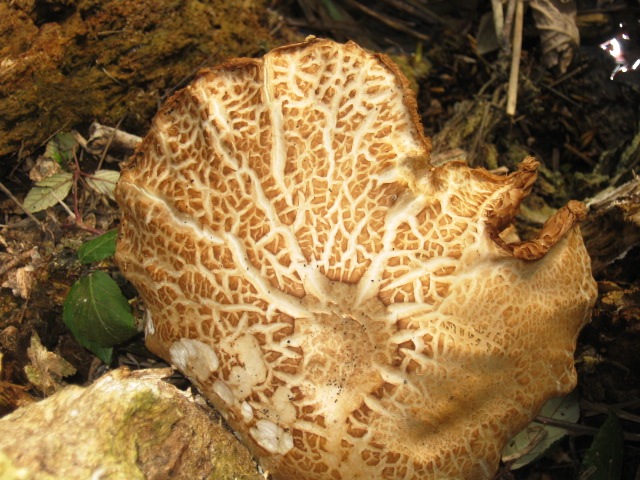 Ciao, affinchè qualcuno ti possa dare una risposta sarebbe necessario che tu inviassi una foto che mettesse in evidenza altre parti del basidioma. Io vedo solo la parte superficiale del cappello (e forse potrebbe essere quella di uno Xerocomus o di un Gymnopilus) poi vedo un pezzo di fungo in basso a sinistra dove sembrano esserci resti di tubuli verdastri, si tratta di un pezzo di un fungo raccolto vicino a quello ritratto dall'alto? Se fosse così si avvalorerebbe l'ipotesi Xerocomus sp altrimenti non saprei.