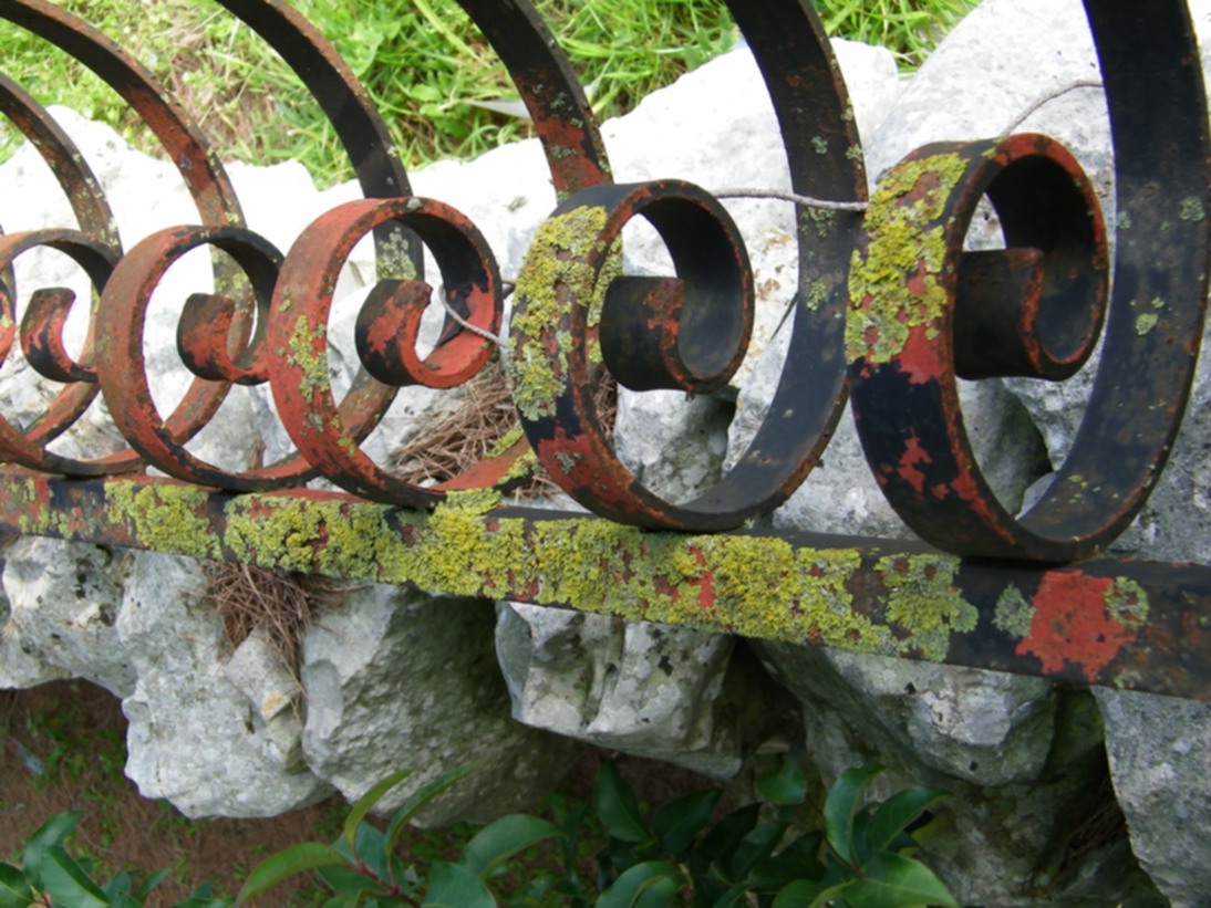 questa estate, mentre ero in coda per lavori, ho notato dei licheni su una ringhiera metallica. Non ne avevo mai notati, anzi, da allora ne ho cercati, ma non ne ho mai trovati su vernici, anche vecchie e scrostate, o su metallo. Pochi giorni fa sono tornato sul posto (SS172, tratto Martina Franca-Locorotondo, a pochi km da Martina Franca) e li ho fotografati. Una foto d'insieme