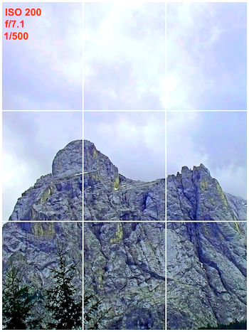 Allora: metto a fuoco… regolo l'apertura… sì, così… regolo il tempo… Attenzione, che gli abeti non mi vengano neri invece che verdi… ecco! Dunque, così dovrei rendere bene anche il contrasto delle nuvole di diverso colore… sì! Curo l'inquadratura… non respirare… pronti a scattare… PRONTO! Uno, due, tre, e…"