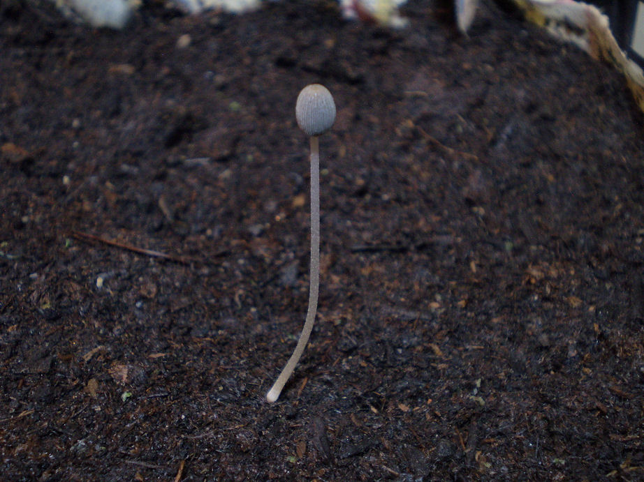 Venuto sù nel giro di 24 ore nel terriccio umido dove sto attendendo che germoglino delle piante che ho seminato. Alto circa 4 cm, ce n'erano altri più piccoli in altre casse...