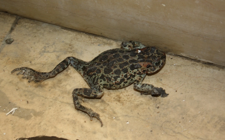 Sembra ancora molto molto "fresco".... Hai provato a metterlo in acqua? Una volta ho tolto una rospa che stava a zampe penzolanti a galleggiare in acqua, magrissima e CON LE ALGHE SOPRA. A vederla era un cadavere affogato e punto; ma appena l'ho tolta dopo 10 minuti ha ripreso a muoversi e se n'è andata!!!!