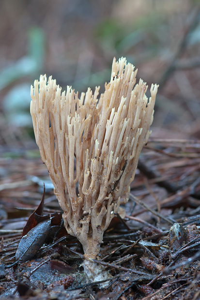 Per mia esperienza non ho mai trovato Ramaria gracilis con questo aspetto, generalmente la trovo sempre con aspetto arborescente, rami molto sottili e fragili interamente biancastro solo a maturazione si colora di ocra per la formazione delle spore.Inoltre ha un caratteristico odore di anice che lynkos non ha però menzionato. Pertanto vista la crescita su aghi di pino (anche se il bosco era misto leccio e pino)io più che Ramaria stricta opterei su un giovane esemplare di Ramaria flaccida, che generalmente si presenta con rami paralleli, angolazioni delle selle tipicamente ad U, con apici generalmente più chiari rispetto ai rami, ed un odore definito di "botte vecchia". E' chiaro che si tratta di una mia supposizione che dovrebbe esser confermata con la microscopia.