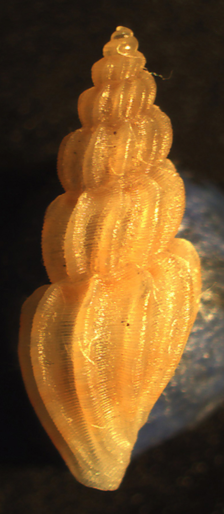 Detrito da ripasciamento di Cupra Marittima -10/80 m, 2010, lunga 6 mm. Protonconca di circa 2.5 giri.