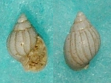 In effetti le due pliche columellari dovrebbero portare al genere Ringicula. D'altra parte non ho mai visto ne dal vero ne in pubblicazioni ringicule con colorazioni: la specie di Morlet, Ringicula admiralis, vine ricondotta nella sinonimia di R. conformis, Ciccone e Savona, 1982, e sia nella descrizione originale che nella revisione del 1982 si parla di coste assiali e non di bande colorate. Anche la protoconca mi sembra meno accentuata e proporzionalmente più grande che in altre forme di Ringicula. Ciao.