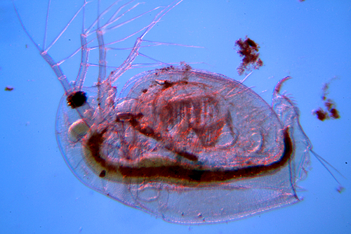 Ecco il mio primo esempio usando l'illuminazione di Rheinberg, in particolare soggetti ROSSI su sfondo BLU. La foto non è delle migliori, ho fatto tutto velocemente, la Daphnia è schiacciata e ho abbozzato uno slittino base MA ---> mi sento che con questa tecnica raggiungerò risultati molto particolari devo solo rifare lo slittino come si deve e con colori più intensi o diversi. Cmq la tecnica è buona è può essere utile per migliorare la visualizzazione di alcuni dettagli nonchè per fini estetici.