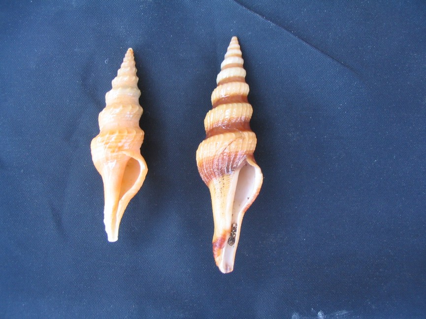 A proposito della turdus, sempre a Lampedusa ho trovato le Fusiturris similis e undatiruga.Ovviamente non sott'acqua ma in un negozietto di souvenir (la undatiruga, ma aveva anche l'altra) e in una pescheria (la similis). In nessun altro posto della Sicilia ho mai trovato le 2 specie. Chi di voi conosce l'areale di distribuzione delle 2 specie? L'habitat credo che sia il fangoso profondo. La foto: 51mm la undatiruga ; 62mm