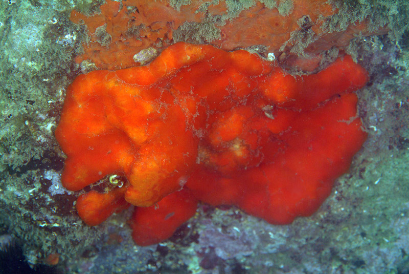 La spugna si presentava come un grosso ammasso carnoso, di dimensioni 25 x 20 cm circa. La lontananza dal soggetto non mi ha permesso di realizzare immagini nitide.