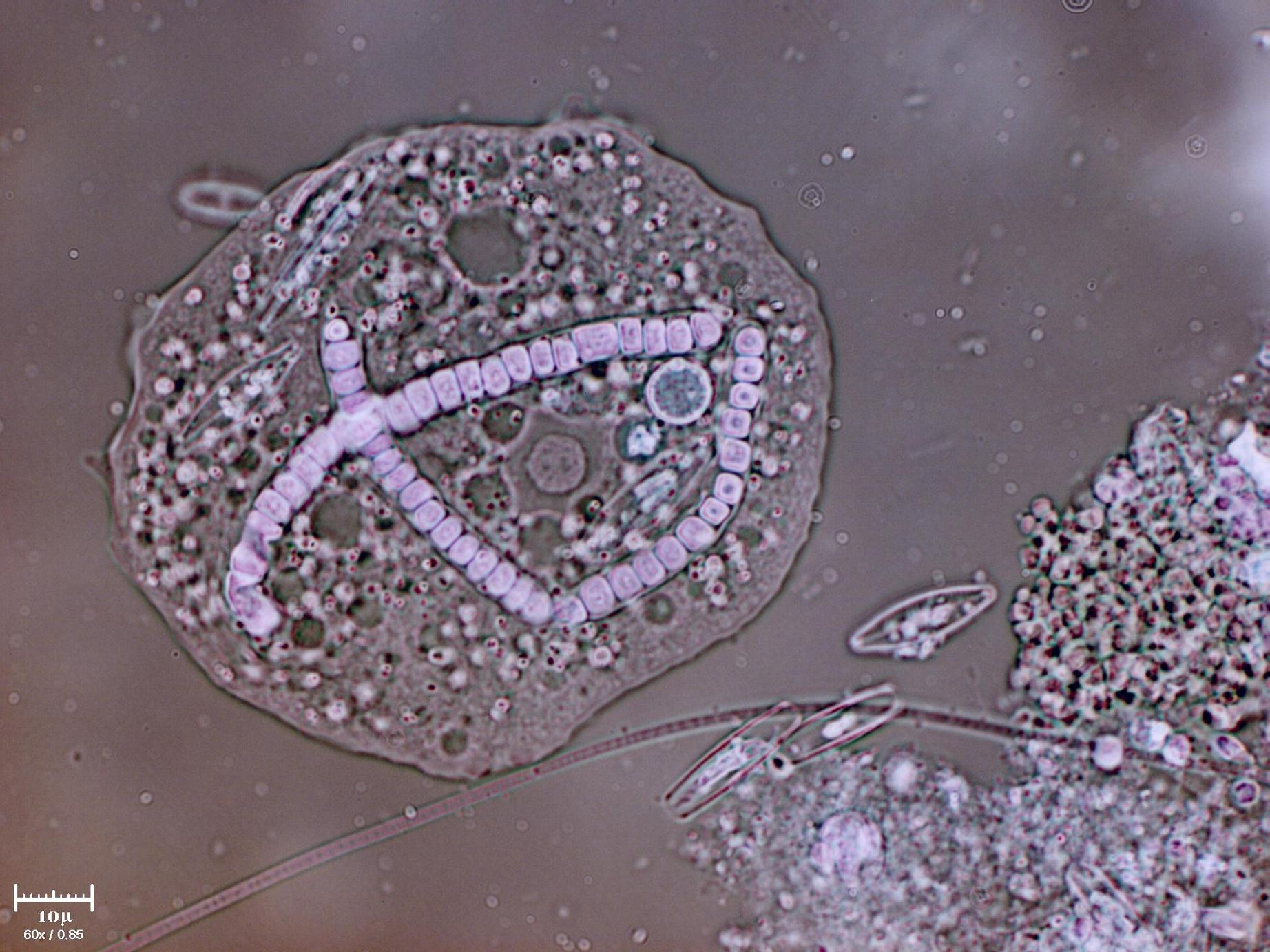 All'interno si vedono delle catene di cellule algali e delle diatomee (tipo disco volante, giusto ??), sono state appena ingerite/assorbite ?