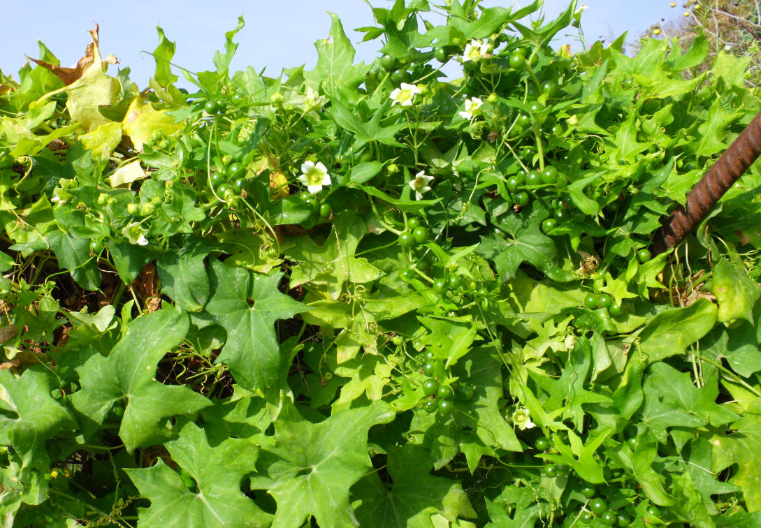 penso Bryonia cretica subsp. acuta(syn. Bryonia acuta) proprio per quelle foglie con lobi acuti..se ritorni sul posto controlla se la corolla presenta il tubo ghiandoloso, se si allora è certamente lei...