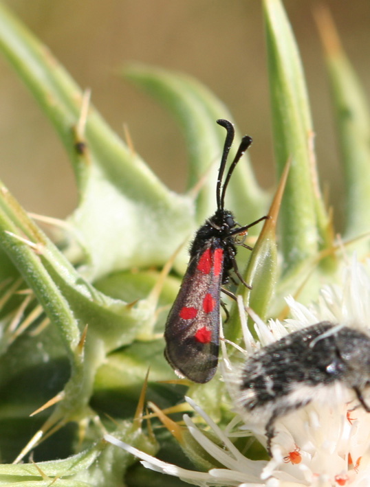 Confermo, anche perchè l'unica altra Zygaena sarda è Z. orana, e questa delle foto NOn presenta gli anelli chiari intorno alle macchie rosse..questa però è una specie di altura, è possibile sapere la località di rinvenimento e l'altitudine?