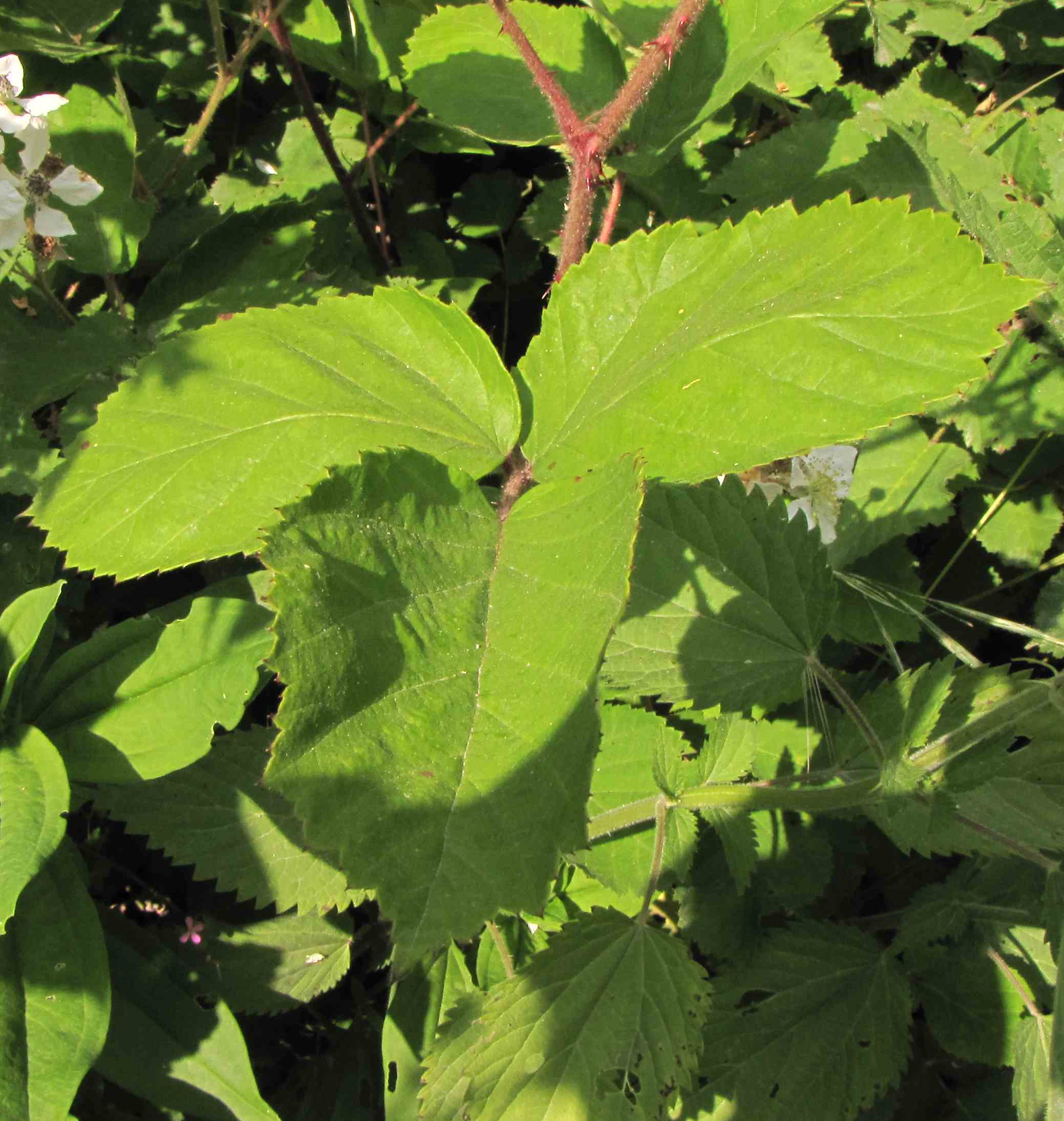 Grazie, Zander. C'è qualcosa che non mi torna: la foglia è più simile a quella del nocciolo (anche se più piccola) che a quella dell'ulmifolius; poi è pelosa e, forse per questo, sembra più spessa; il fusto è peloso, rossiccio, tondo e con spine più piccole dell'ulmifolius. La pianta cresce qui dai secento metri in su (e quindi non condivide in toto l'habitat con l'ulmifolius), spesso la si trova nei noccioleti, e tende a mantenersi bassa. Ho chiesto a dei contadini: loro la chiamano ruetto fimminino (rovo femmina), distinguendolo nettamente dal rubus ulmifolius. Che poi abbiamo lo stesso nome scientifico non so...