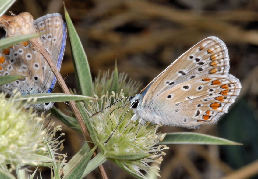 è un Polyommatus icarus, ma è un maschio, la femmina non ha le ali azzurre e le macchie arancioni le hanno entrambi i sessi...