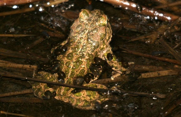 Beh, non me l'aspettavo! Mai visto nulla di simile... Stasera, a caccia della Luna eclissata (nascosta dalle nuvole), arrivo su un laghetto artificiale fatto appositamente per essere naturalizzato. Dentro c'è di tutto, dalle larve di libellula ai collemboli, e ci sono 2 rospi smeraldini maschi che cantano... Fotografo entrambi, e quando arrivo a casa e guardo le foto...