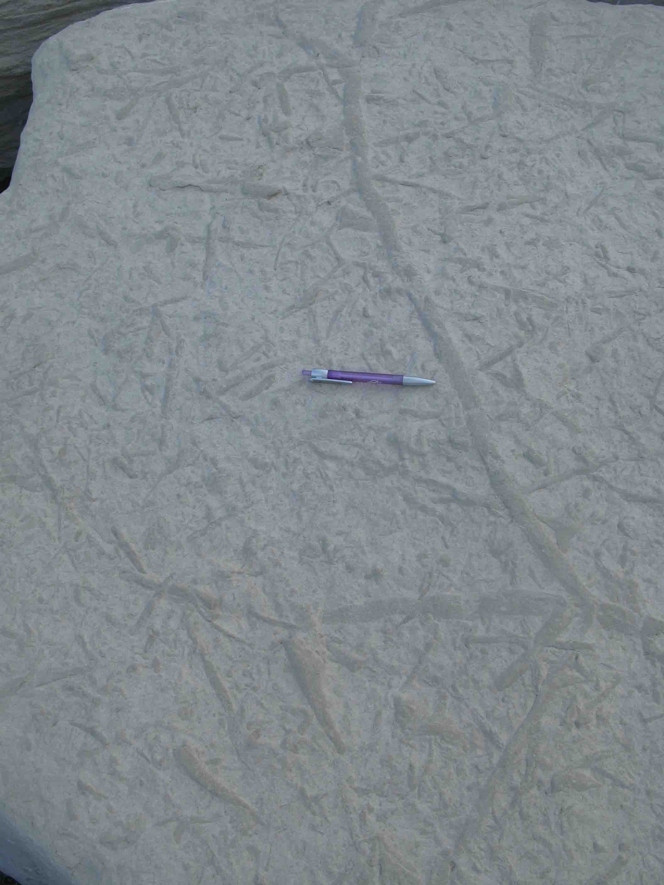 sembrerebbe che i vari "vermaccioni" che si infossavano nel sedimento per nutrirsi, trovassero a un certo punto uno strato già più diagenizzato e "cementato", sul tetto del quale striscivano per un poco (solo i più grossi per un pò di più) e poi tornassero verso l'alto; infatti noto che quasi tutte le tracce dei detritivori che hanno lasciato questi burrows, iniziano e terminano con una forma appuntita, che corrisponderebbe, credo, al momento del primo contatto e dell'abbandono della superficie dello strato, in sostanza con una traiettoria ad "u";