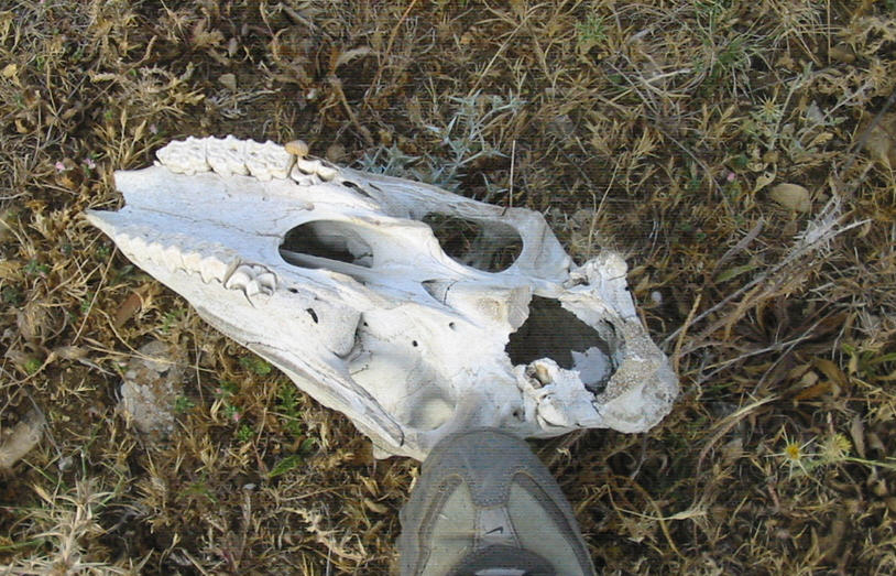 vedendo queste foto, vorrei fare una domanda ai più esperti! guardando la 2° foto, nell'osso dietro all'occhio, se notate in quello sinistro c'è un buco, in quello destro no! (per intenderci è quell'osso che nella 1° foto è coperto dalla punta della scarpa) io ho un teschio di piccolo di cavallo, ed ha lo stesso buco: mi sono sempre chiesto il motivo di questo buco. qualcuno sa rispondermi???