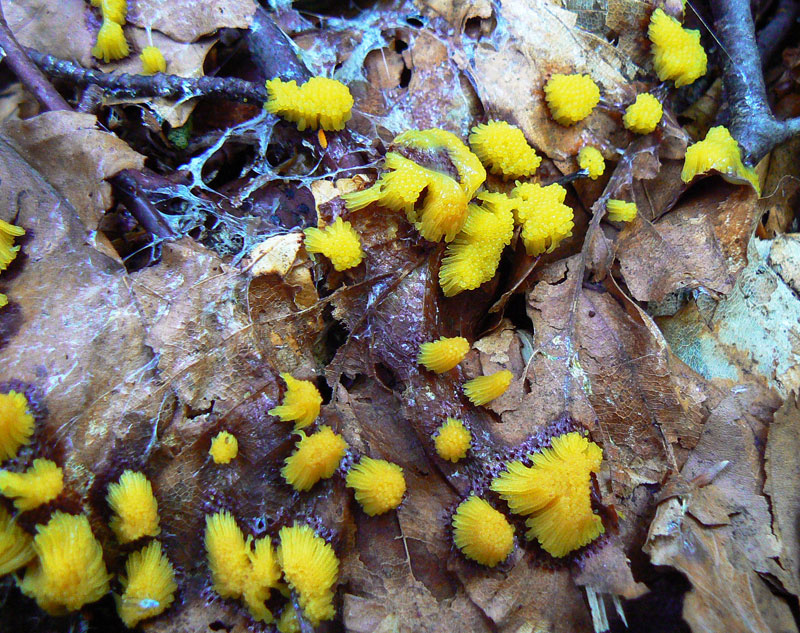 Ciao Sarah  sono bellissimi e devo dire che non ho mai visto niente di simile; tuttavia la loro forma a "fascetti" mi fa pensare a Mixomiceti non ancora maturi del genere Stemonitis. Prndi questa considerazione con beneficio di dubbio perchè avremmo certezze solo seguendone lo sviluppo nei giorni a venire. Certo che se li avete raccolti e sistemati in camera umida...  |