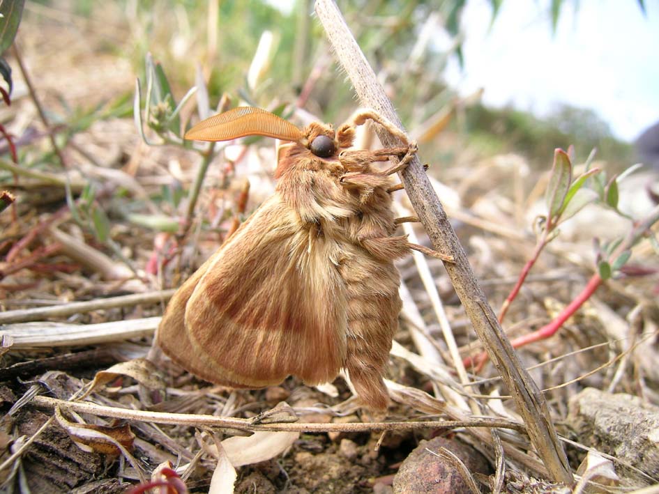 Salve. Sarà possibile determinare la specie di questa bella farfalla (o falena) dalle antenne pennate? Fotografata a Osilo (SS) il 27 settembre 2010. Nel territorio sono presenti molti bruchi di Malacosoma e di Lasiocampa. Grazie
