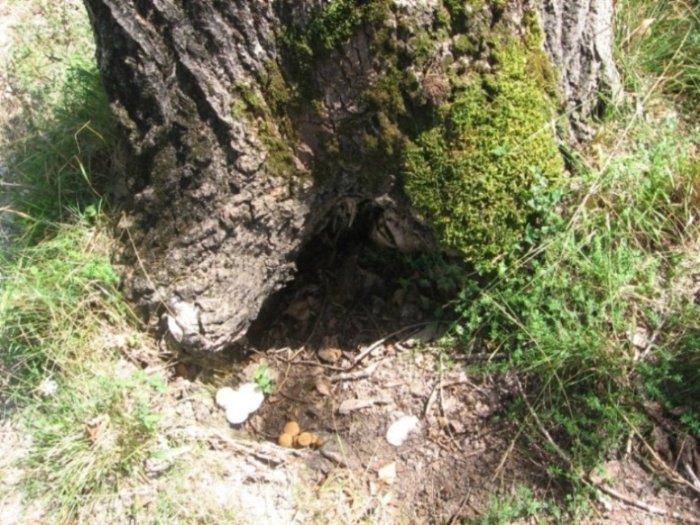 Foto 1: la base dell'albero con i funghi, vista da lontano.