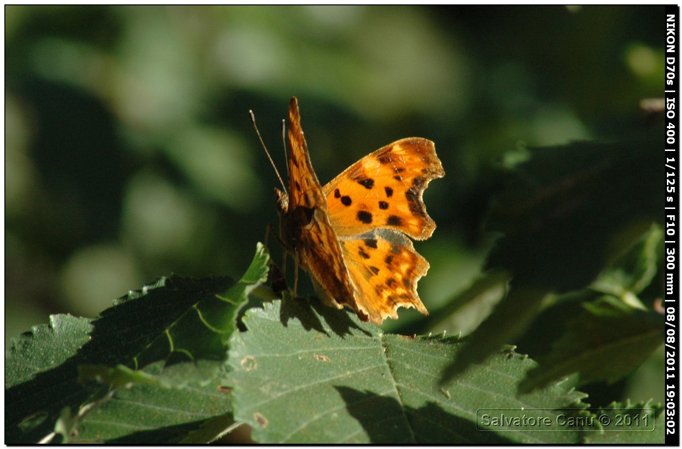 Direi Polygonia c-album, Nymphalidae, anche se il rovescio ali non si vede.