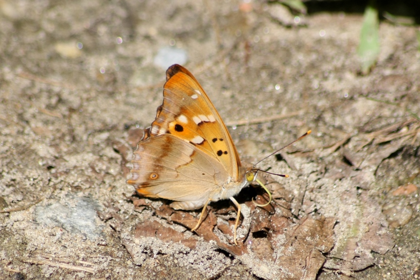 ...sul sentiero una Argynnis paphia appoggiata sul terreno ormai secco. Immagine: