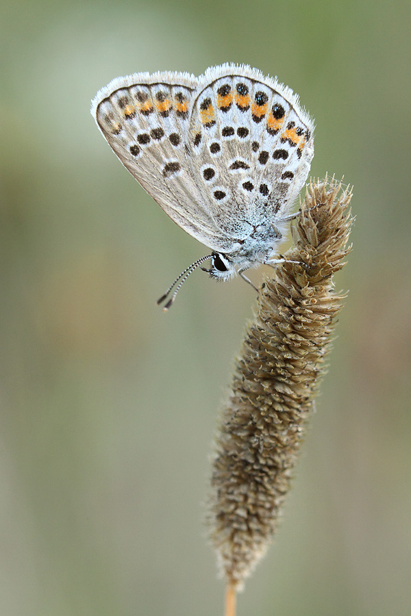 Bellissima foto!! si tratta di un Plebejus sp. difficile dire quale fra P. argus, P. argyrognomon e P. idas (o Lycaeides abetonicus secondo altri autori ). un carattere che può far da discrimine fra le tre specie, è la presenza di una spina tibiale presente solo nei maschi di argus, spina che qui mi sembra di intravedere
