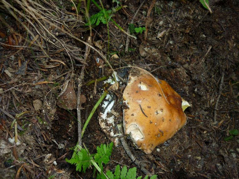 nascono i funghi ad alta quota sotto gli abeti, tutti interati con un gambo molto più sviluppato del cappello, ne spuntava solo un pezzettino, ma l'occhio dellla mia amica Andre l'ha captato e allora abbiamo un po' scavato....