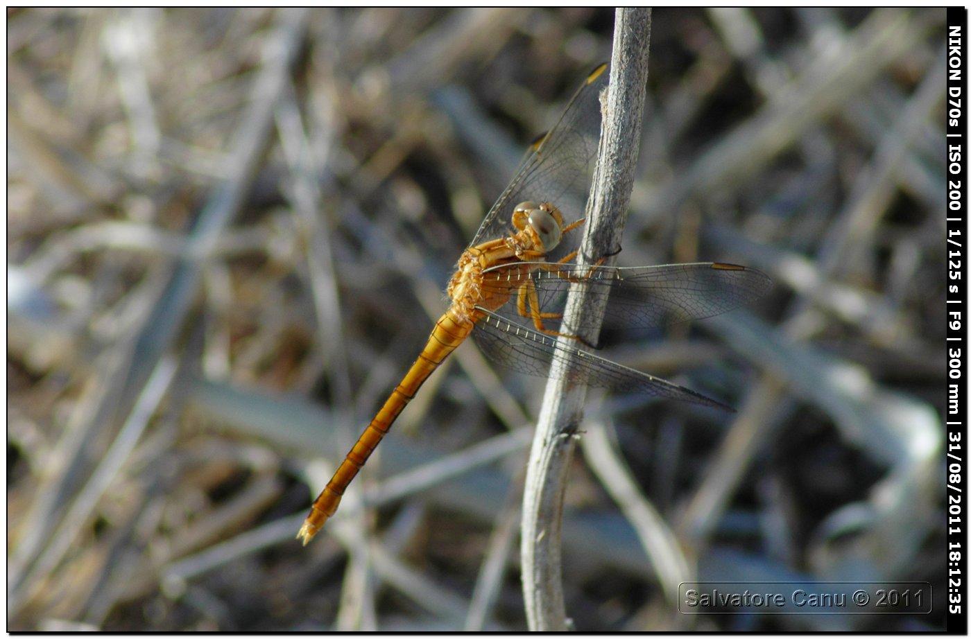 Fotografato a Usini (SS) il 31/08/2011, io direi la prima foto Crocothemis erythrea femmina e la seconda Trithemis annulata femmina.