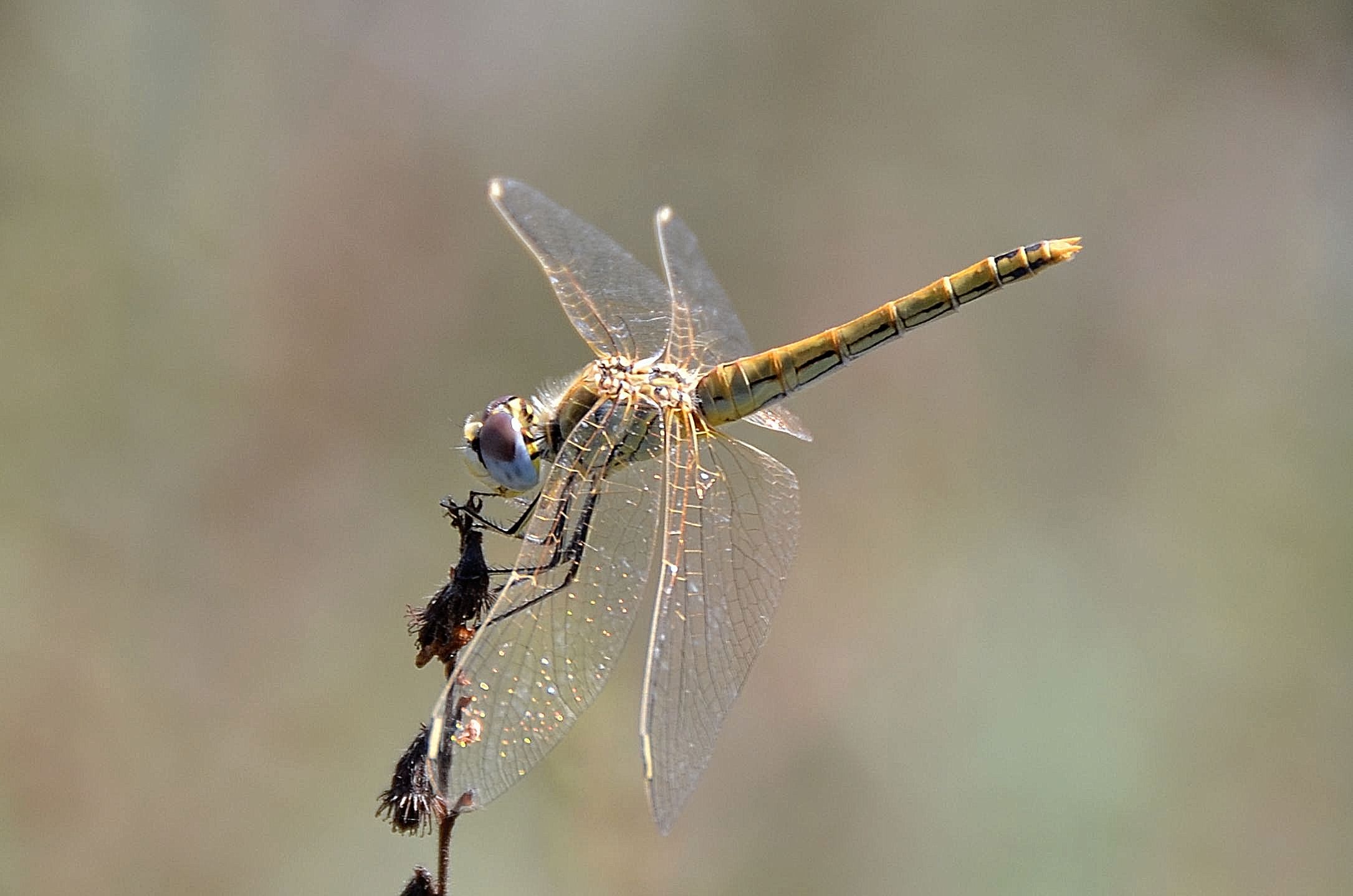 Ciao Baudino  Ci provo anch'io: le Trithemis non vivono da noi, quindi la escludo. Di libellule così ne vedo parecchie in questi giorni, intorno a Cuneo: provo a motivare: zampe lineate di giallo metà inferiore degli occhi blu altri caratteri poco visibili ma intuibili (sulle ali, sul corpo) dico: Sympetrum fonscolombii femmina