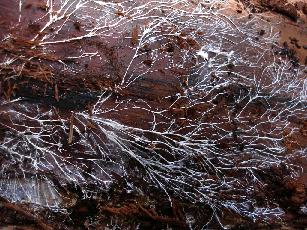 Questi grovigli mi sono apparsi sollevando la corteccia di tronco morto di Abete bianco. Confesso la mia ignoranza. Sono ife di un qualche fungo ? Se no, cosa ?