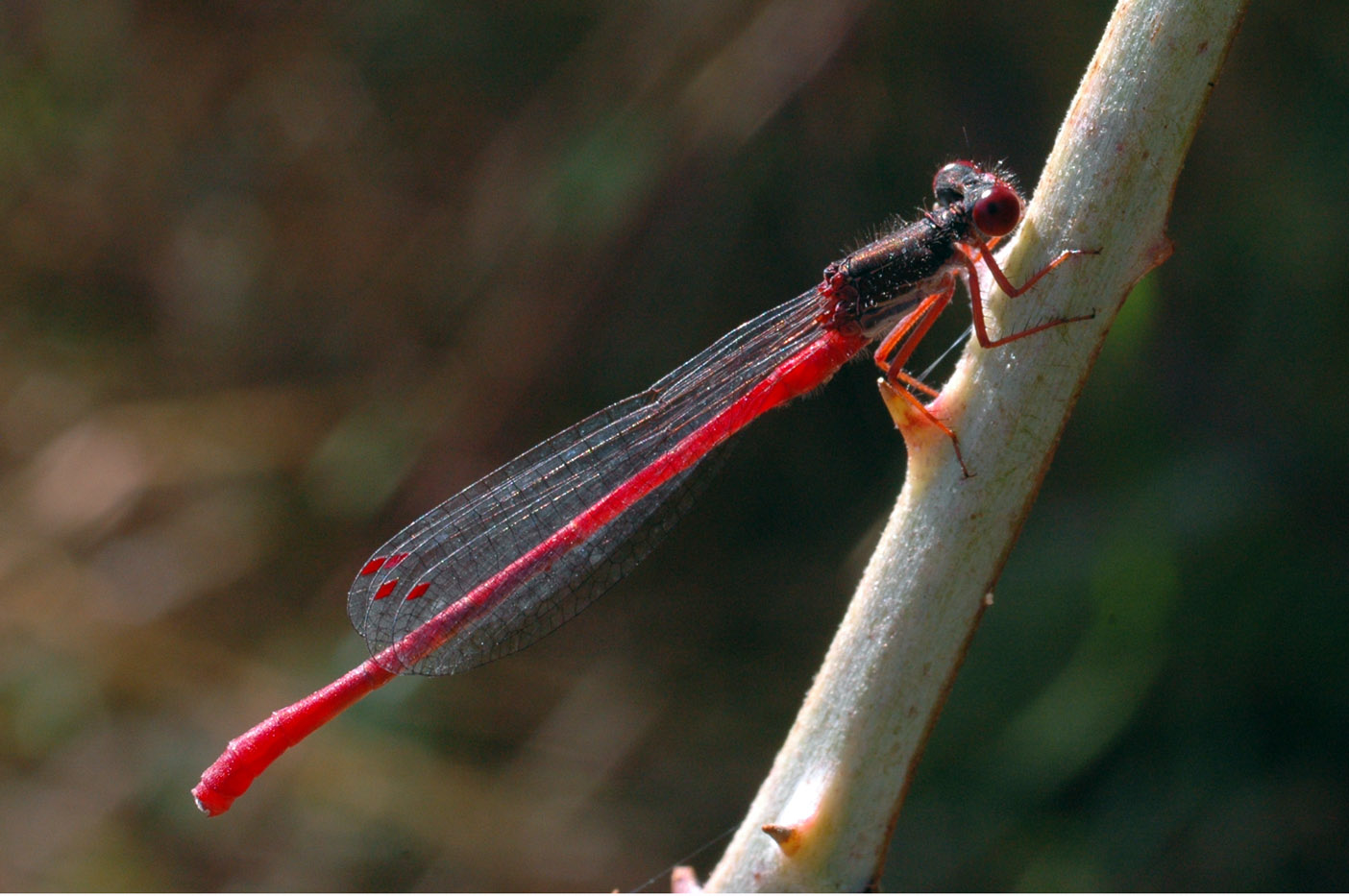 Fotografato a Usini, il 09/07/2011. Il soggetto è un Ceriagron tenellum maschio, l'immagine è esaltata dal controluce che fa risaltare il rosso dell'addome e del pterostigma, sembra che la luce lo attraversi. Immagine: 220,67 KB
