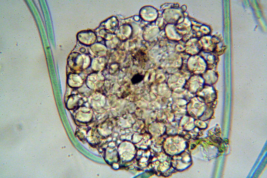 MUMBLE...(faccio finta di ragionare) a parte quei bellissimi cianobatteri che affollano la scena l'oggetto in questione (e dico oggetto e non soggetto perchè non credo sia vivente) è molto interessante e forse più nobile di una monnezza. Sembrano cristalli minerali incollati insieme da qualche sostanza misteriosa.... comunque belli i cianobatteri!