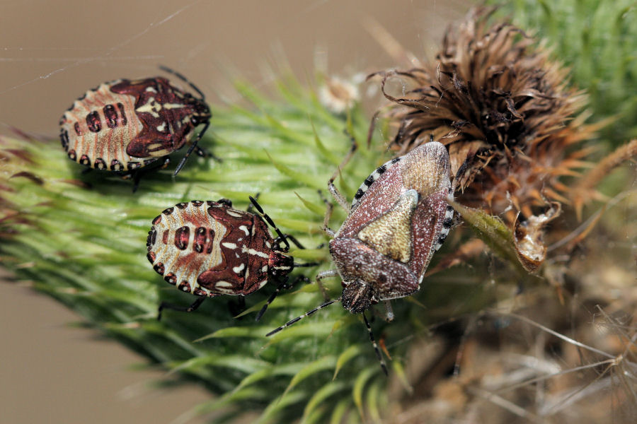 L'adulto è della specie indicata. Le ninfe sono di Carpocoris sp.