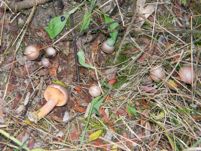 1 Chroogomphus rutilus 2 - E' una lepidella habitat e quant'atro mi dicono Amanita boudieri 3 - Con quella barbazza slls base direi Scleroderma meridinale sentiremo gli altri) 4 - Intravedo un anello farinoso Amanita ovoidea 5 - Pisolithus arhizus