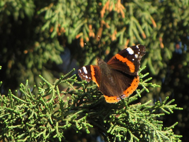 Posto questa immagine di Vanessa atalanta scattata questa settimana sull'isola di Ustica. La farfalla, molto confidente, ha passato interi giorni posata sul nostro vialetto, inseguendo insistentemente tutte le altre Vanesse, le altre farfalle, i calabroni, perfino le rondini (una suicida!), insomma qualsiasi cosa volasse...