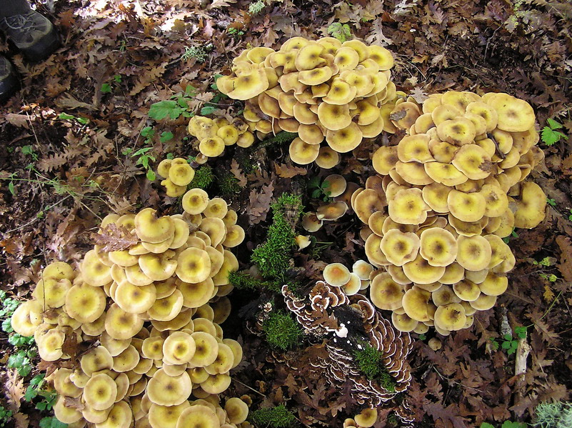 Questo è il tipico caso in cui un raccoglitore frettoloso, trovandosi davanti a quello che ritiene un bel cespo di Armillaria mellea, si intossica mettendo nel cesto anche l'intruso Hypholoma fasciculare detto anche "falso chiodino"(tra grandi e piccoli ne ho contato circa venti). Porta a casa il raccolto e lo consegna alla moglie che lo trifola (lei di funghi non ne sa molto ma si fida del marito "un gran conoscitore di funghi") e lo consuma con la famiglia o magari anche con amici, causando una bella intossicazione collettiva... (nausea, vomito, dolori addominali, diarrea). Ovviamente all'insorgere della sintomatologia il raccoglitore penserà solo ad una banale indigestione "ieri sera abbiamo abusato con i funghi"... perchè è sicurissimo di aver raccolto i chiodini (A.mellea) che conosce benissimo e così rassicurerà i commensali perdendo tempo. La sindrome gastro intestinale, infatti, di solito non è mortale se si interviene tempestivamente ... ma in organismi debilitati si può avere anche il decesso a seguito di squilibrio elettrolitico.