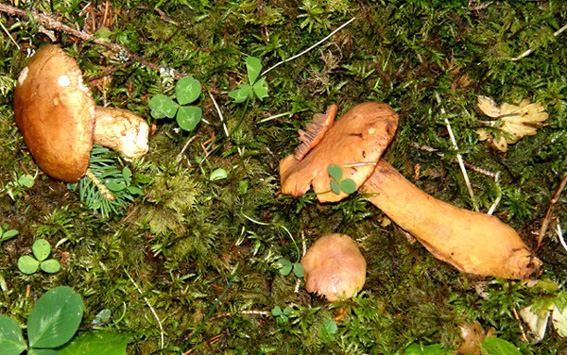 Quella di sinistra mi lascia perplesso, gambo slanciato e clavato di colore strano, lamelle decorrenti (ed erose?) o pseudo tali, forse anche qui Cortinarius spp, ma affrmare che si tratti della specie precedente è un azzardo che non mi sento di avvallare.