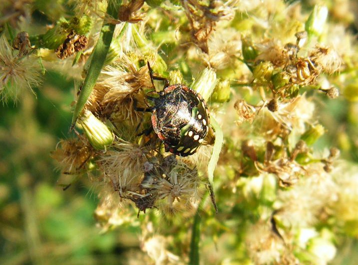 Eccoti un sunto veloce di quello che succede: Fra un instar ed il successivo si ha una muta. A quel punto il colore e i disegni sono diversi da quelli dell'instar precedente e l'insetto è un po' più grande. Subito dopo la muta il colore è comunque diciamo da 'teneral' e si stabilizza da un po' di tempo in quello tipico di quell'instar. In autunno anche alcuni, ma non so se tutti, i Pentatomidi cambiano colore. Ad esempio lo fanno Nezara viridula e Palomena prasina che diventano marroncine per mimetizzarsi meglio. Cercano un rifugio e si ibernano fino alla primavera. Una cosa interessante è che quando la femmina depone le uova, secerne batteri che le larve neonate mangeranno insieme ai resti delle uova dalla quali sono sgusciate. Infatti hanno bisogno di batteri per la digestione del cibo che mangiano. Alida |