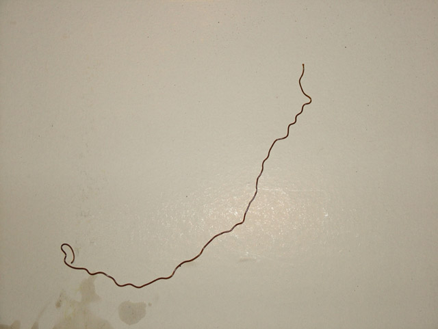 stamani mentre cercavo fossili (la mia passione)ho notato alcuni vermi sottili e filiformi che nuotavano in una pozzanghera.Sono lunghi dai 15 ai 20 cm.diametro 1 mm. Un'estremita è bifida,mentre l'altr è leggermente troncoconica.