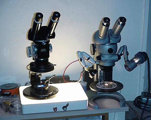 I primi problemi nascono già al momento della scelta: di tipo CMO o di tipo Greenough ? Tra i moderni sono certo più diffusi i CMO, molto più semplici da costruire e certamente più economici, ma dalle prestazioni piuttosto limitate. Specie se dovrete usare ingrandimenti forti, è molto meglio orientarsi sui più costosi Greenough. Li potete facilmente riconoscere guardando l'obiettivo: se è uno solo è un CMO, se vedete due obiettivi (o due buchi) è un Greenough.