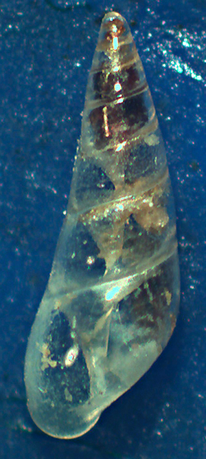 Ciao , esemplare lungo 1.35 mm, da Scilla - 45 m , 2010. Non è esemplare maturo, ma perlomeno è completo. Propenderei per la specie indicata in oggetto, ma la famiglia degli Eulimidae è complicata...In vista laterale aggiungo un foto perchè forse con un mix tra le due foto si può meglio stabilire l'orientamento del labbro esterno, che per me è prosoclino. Qual è il vostro parere?? Saluti, Flavio Immagine:
