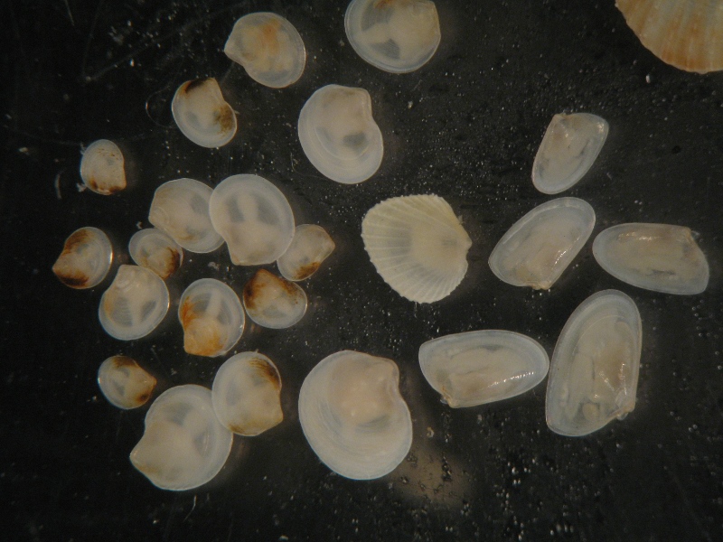 Allora: i Lucinidi potrebbero essere giovanili di Loripes lacteus, i Veneridi credo Venus verrucosa, tranne quello in alto che è un'altra cosa. Per gli altri onestamente non so, tranne che gli ultimi due dovrebbero essere dei Pyramidellidae o simili (quello di destra una Turbonilla)