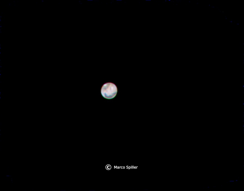 ciao Marco; ti dicevo della relativa "nitidezza" della tua, perchè mi ricordo che un mio amico appassionato di astronomia ai temp del liceo, mi fece vedere un'immagine di un rosso quasi uniforme che lui attribuiva ad immaense nubi di polvere sollevata e diffusa per tutta la rarefatta atmosfera marziana; possibile?